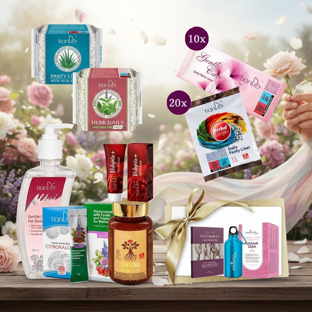 Jede Teilnehmerin des Royal Weight Loss Kurses erhält automatisch ein kostenloses E-Book. Ein umfassendes Paket zur Unterstützung der weiblichen Gesundheit, des hormonellen Gleichgewichts und des intimen Wohlbefindens. Enthält tianDe Naturprodukte für die tägliche Intimhygiene, therapeutische Binden mit Kräuterextrakten und Nahrungsergänzungsmittel zur Unterstützung von Hormonhaushalt und Energie. Alles für die Gesundheit und den Komfort der modernen Frau in einem Paket mit kostenlosen Geschenken: eine praktische blaue Flasche, ein E-Book und Healthy Woman Kräutertee.