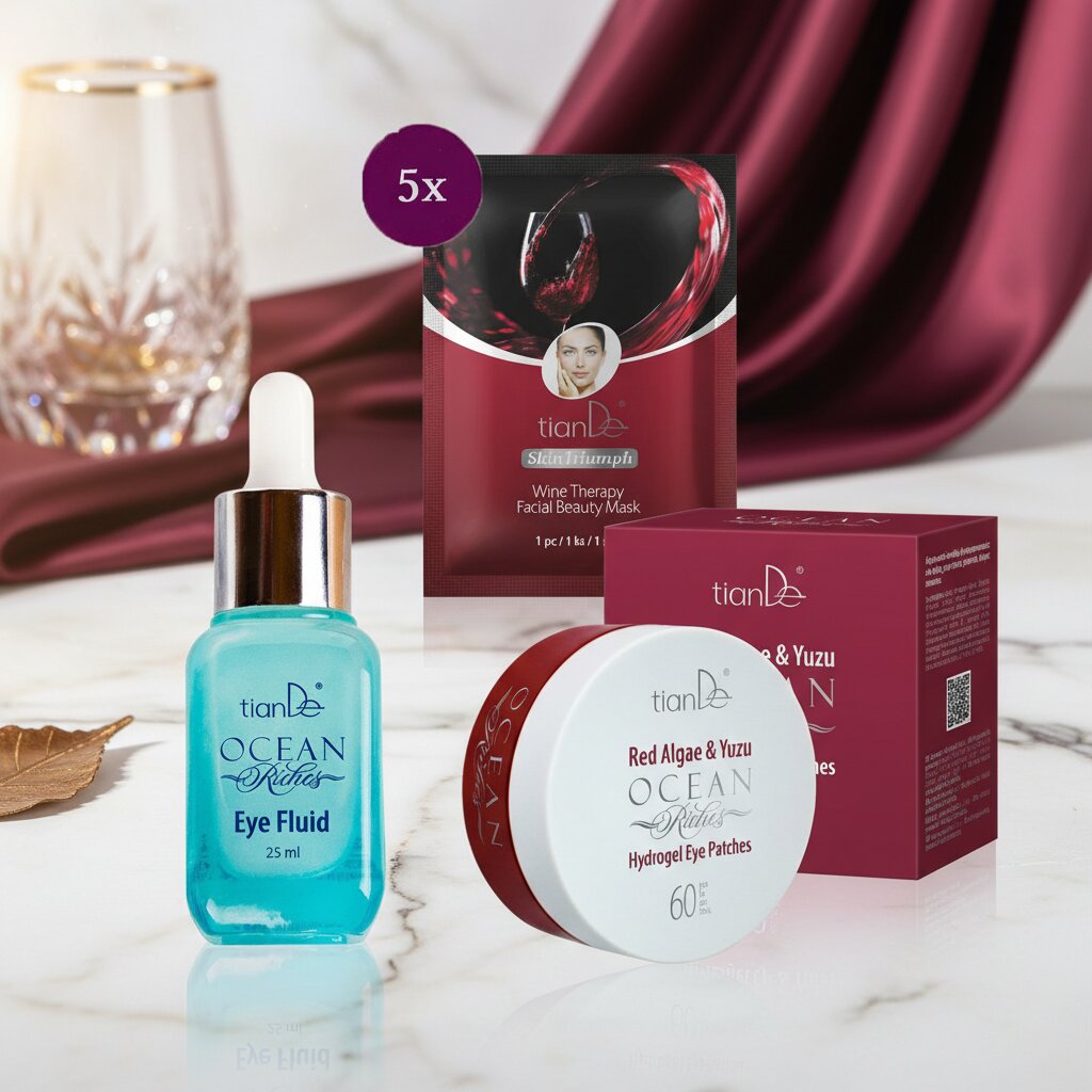 Wir bei tianDe Kingdom glauben, dass Schönheit aus der Harmonie von Körper und Geist entsteht. Unser Paket kombiniert die Weisheit der traditionellen chinesischen Medizin mit moderner Technologie für optimale Ergebnisse. Die Hydrogel-Pads nutzen eine patentierte Technologie, um die Wirkstoffe nach und nach freizusetzen, während Extrakte aus rotem Seetang und Yuzu, die seit Jahrhunderten für ihre regenerierende Wirkung bekannt sind, tief in die Haut eindringen. Das Ocean Riches Fluid enthält wertvolles Meereskollagen und Mineralien, die auf schonende Art und Weise unter Berücksichtigung der marinen Ökosysteme gewonnen werden. Die Weintherapie profitiert von den antioxidativen Eigenschaften von Trauben aus biologischem Anbau. Alle Produkte werden unter Berücksichtigung der Nachhaltigkeit und ohne Tierversuche hergestellt, denn wir sind der Meinung, dass Schönheit nie auf Kosten der Natur gehen sollte.